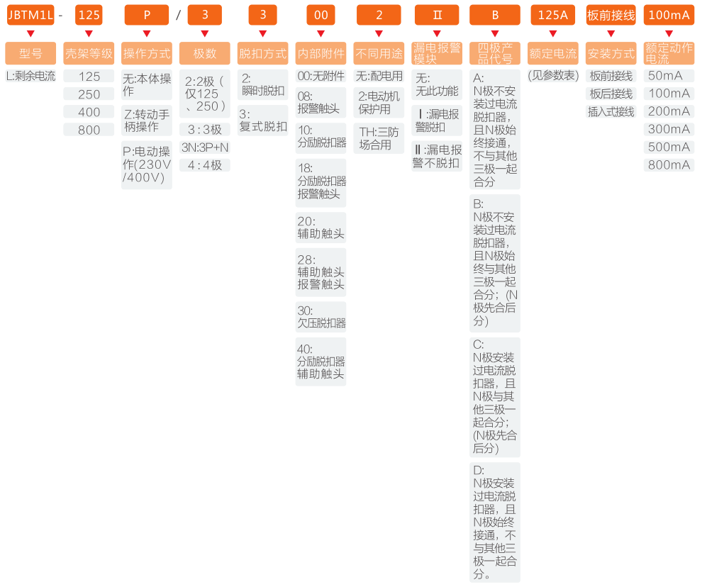 JBTM1L-125分为:10A、16A、20A、25A、32A、40A、50A、63A、80A、100A、125A;